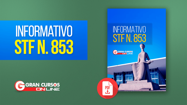 De grande relevância para os concursandos e para os alunos de Direito que participarão do Exame de Ordem, os informativos do Supremo Tribunal Federal, contém resumos de decisões proferidas pelo Tribunal elaborados a partir de notas tomadas nas sessões de julgamento das Turmas e do Plenário. O material disponibilizado é uma cópia fiel em PDF do Informativo de nº 853 disponibilizado pelo STF em seu site. A diagramação do arquivo visa apenas uma melhor qualidade de leitura dos textos.