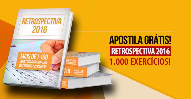 Para ser aprovado em concursos é necessário resolver muitos exercícios. Pensando nisso, preparamos para você que nos acompanha uma apostila gratuita com mais de 1.000 questões de 2016 selecionadas das principais bancas organizadoras do país.