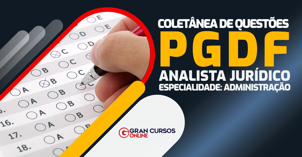 Com a equipe do Gran Cursos Online, você não perde tempo em sua preparação: vem aí a Coletânea de questões PGDF – Analista Jurídico – Especialidade: Administração com várias questões gabaritadas para você testar os seus conhecimentos.