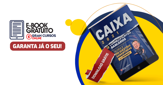 Foi pensando nisso que o Gran Cursos Online preparou, especialmente para você, o E-book de Conhecimentos Bancários para a Caixa, com teoria e 355 questões gabaritadas, que fará a diferença no seu desempenho.