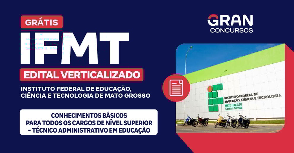 Se você quiser uma preparação diferenciada para o Instituto Federal de Educação, Ciência e Tecnologia de Mato Grosso e para qualquer outro concurso, com ainda mais materiais, mais assessoria, mais conteúdo… faça parte do time de Imparáveis dos alunos Gran e tenha vantagens exclusivas, às quais só quem é aluno da Assinatura Ilimitada tem direito. Ao clicar abaixo, você pode turbinar ainda mais a sua preparação e dar mais um passo em direção ao seu maior objetivo!