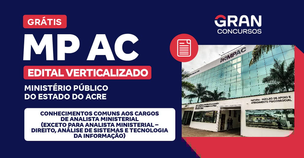 Porém, se a Assinatura Ilimitada não é para você no momento, não tem problema! Você também pode estudar pelos vários cursos para o MP AC disponíveis no Gran. É só clicar abaixo para escolher o seu.