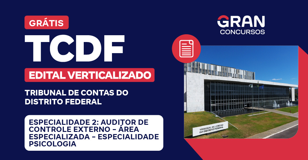 TCDF - Especialidade 2: Auditor de Controle Externo - Área Especializada - Especialidade Psicologia - Pós Edital