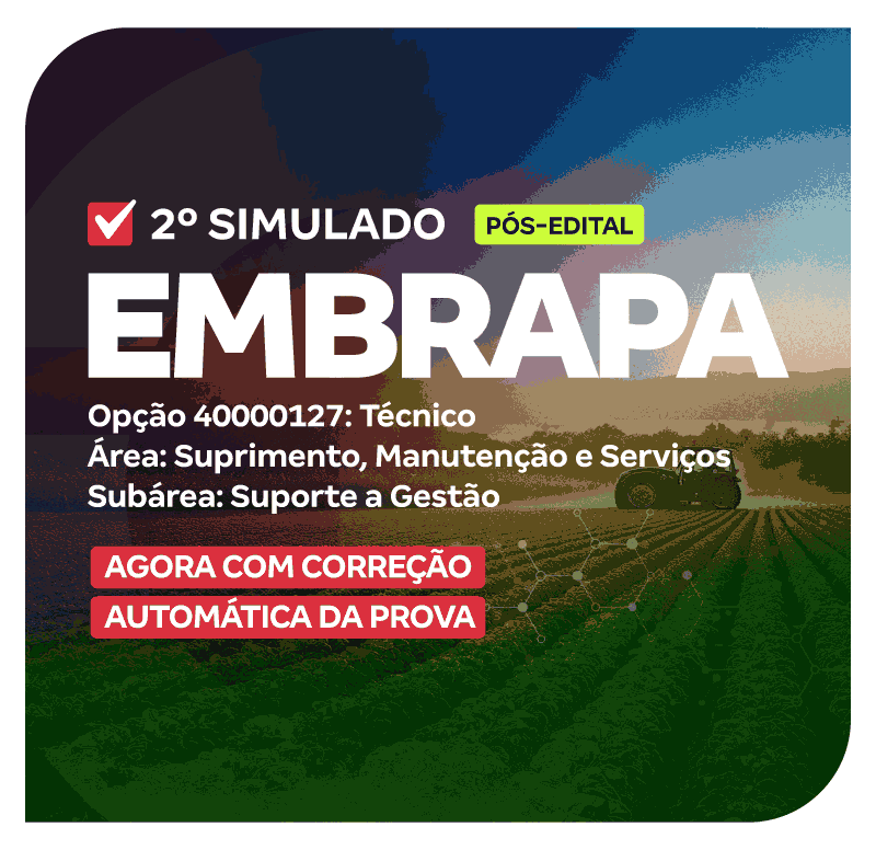 EMBRAPA – 2º Simulado – Opção 40000127: Técnico – Área: Suprimento, Manutenção e Serviços – Subárea: Suporte a Gestão (Pós-Edital)