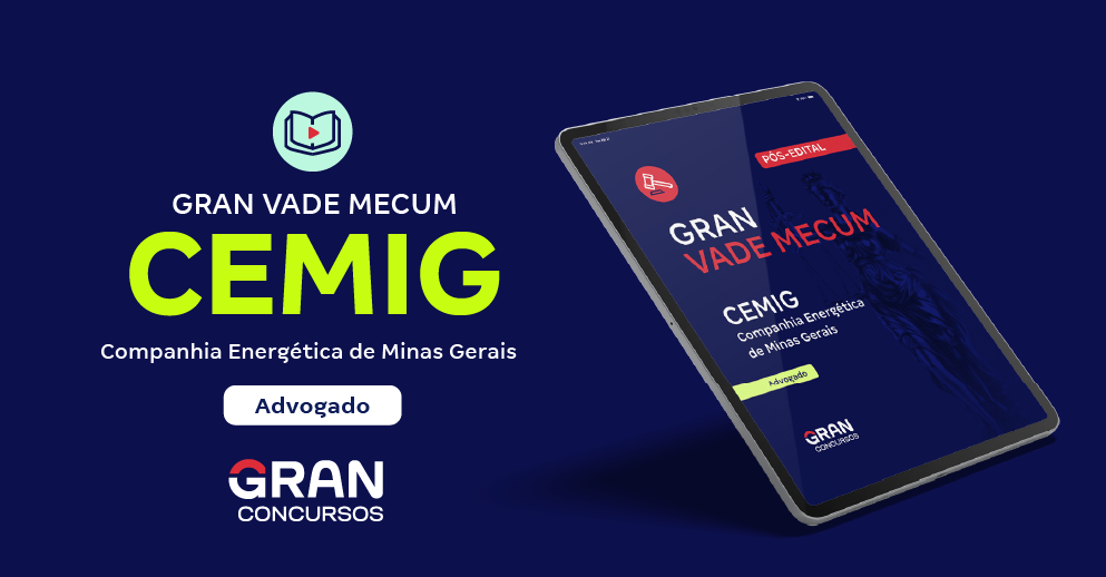 Se você quiser uma preparação diferenciada para a Companhia Energética de Minas Gerais e para qualquer outro concurso, com ainda mais materiais, mais assessoria, mais conteúdo… faça parte do time de Imparáveis dos alunos Gran e tenha vantagens exclusivas, às quais só quem é aluno da Assinatura Ilimitada tem direito. Ao clicar abaixo, você pode turbinar ainda mais a sua preparação e dar mais um passo em direção ao seu maior objetivo!