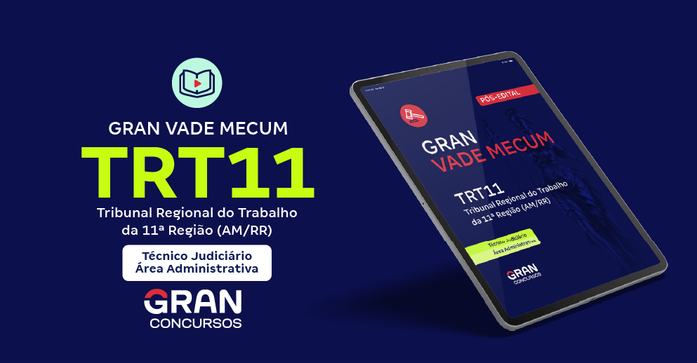 Porém, se a Assinatura Ilimitada não é para você no momento, não tem problema! Você também pode estudar pelos vários cursos para o  TRT 11ª Região (AM/RR)  disponíveis no Gran. É só clicar abaixo para escolher o seu.