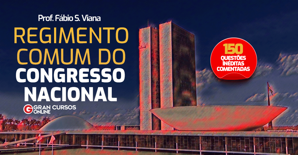 Hoje, preparamos para você um material fantástico: o E-book – Regimento Comum do Congresso Nacional – 150 Questões Inéditas Comentadas! Com esse material, preparado especialmente pelo nosso professor Fábio Viana, você tem em suas mãos 150 questões comentadas sobre o regimento do Congresso Nacional, podendo turbinar sua preparação para os concursos da Câmara dos Deputados e do Senado Federal.